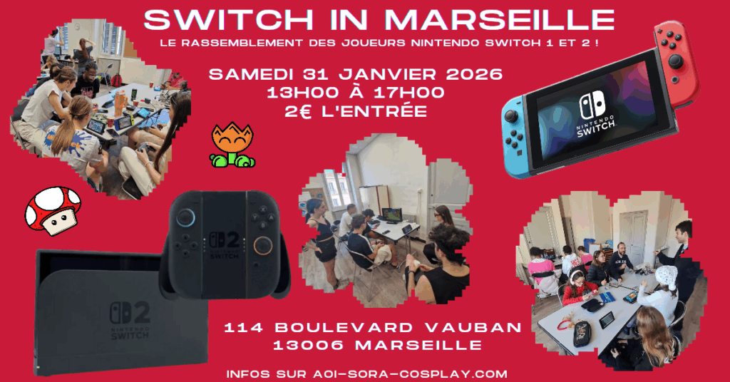 L’association Aoi Sora Cosplay vous donne rendez-vous le samedi 31 janvier à partir de 13h00 pour une nouvelle édition de Switch in Marseille, l’événement convivial dédié à tous les fans de la Nintendo Switch !